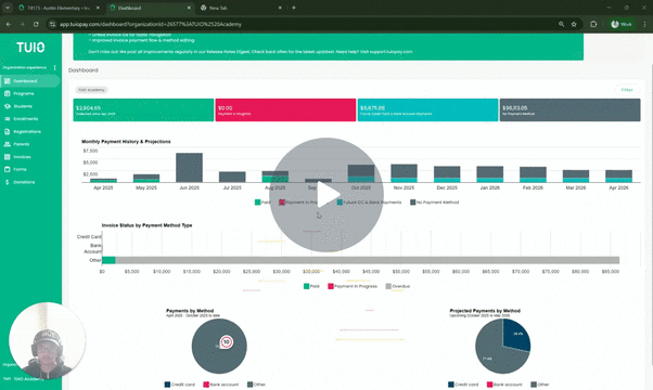 Whether a parent has overdue invoices or wants to pay early, you can easily process their payment method in just a few steps.