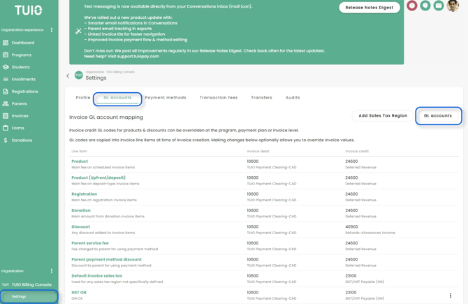 This article explains how schools using TUIO’s Professional plan can set up GL account mapping so that transactions from TUIO are automatically categorized in their accounting software.